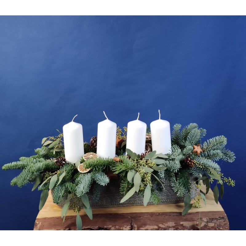 Advent composition with white candles